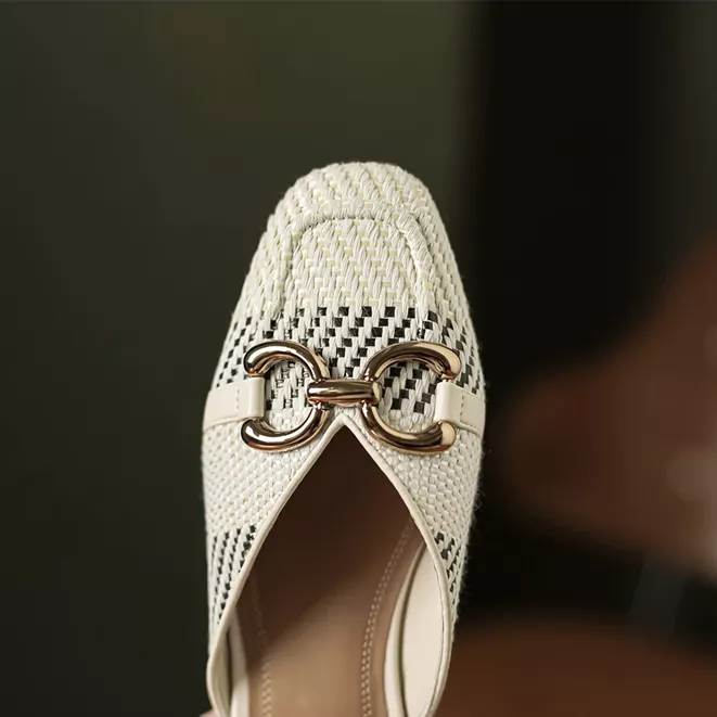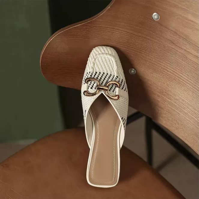 Introducing our latest summer sensation – the Chic Beige Woven Fabric Mules with Metal Accents. Designed for the modern woman who cherishes both style and comfort, these casual summer sandals blend sophistication with a relaxed vibe, making them perfect for any sunny day adventure. Whether you’re strolling through the city streets or lounging at a weekend getaway, these sandals are your ideal companion.