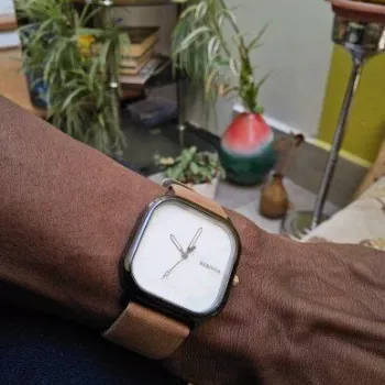What sets this watch apart is its unique square dial design, a departure from the conventional round dials. This feature not only enhances its visual appeal but also makes it a statement piece. The leather strap adds a layer of luxury and comfort, making it suitable for long wear.