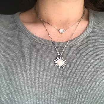 Introducing our Elegant Sun Opal Pendant Necklace – a symbol of warmth and brilliance, designed for the modern woman. This exquisite piece combines the timeless charm of a sun motif with the iridescent allure of opal, set on a durable stainless steel chain. Whether it’s a casual day out or a special occasion, this necklace adds a touch of sophistication and sparkle to any outfit.