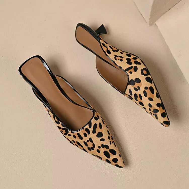 The leopard print design is a game-changer, adding a playful yet bold touch to any outfit without going overboard. They're surprisingly comfortable, thanks to the perfect heel height and cushioned insole. Versatile and attention-grabbing, these mules are a wardrobe must-have.