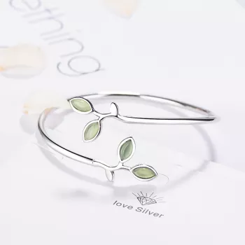 Elegant 925 Sterling Silver Zircon Olive Leaf Cuff Bracelet